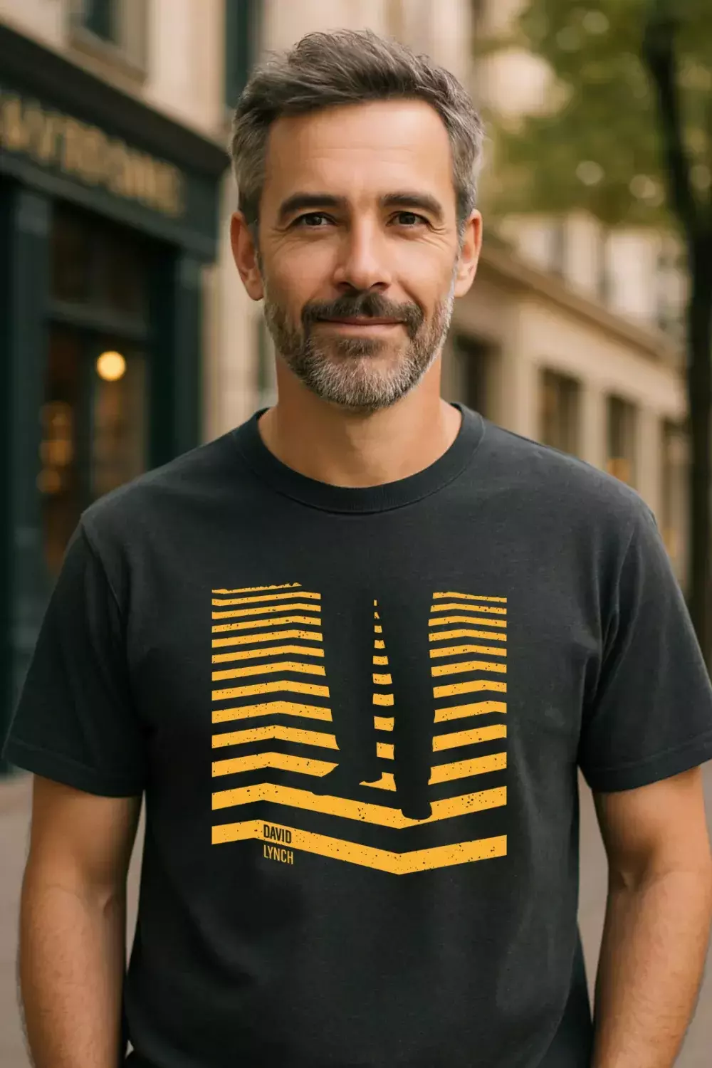 Esta remera rinde homenaje a David Lynch, arquitecto del extrañamiento. Las líneas amarillas no son solo una senda: son un umbral. Como en Lost Highway, como en Twin Peaks, lo que parece cotidiano esconde algo más. Lynch no cuenta historias. Construye atmósferas que persisten.